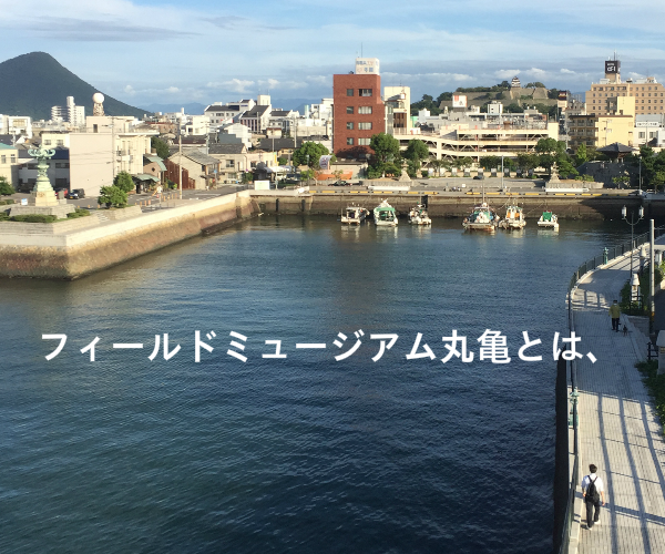 丸亀城下町は、戦災を受けることなく築城時の町割りをそのままに約400年の歴史を刻むまちです。ここには様々な時代の暮らしの営みが積み重なり生まれた厚みのあるまちの姿を見ることができます。このような歴史の痕跡で構成された丸亀城下町を一つの博物館と見立てて「フィールドミュージアム丸亀」と呼ぶことにしました。