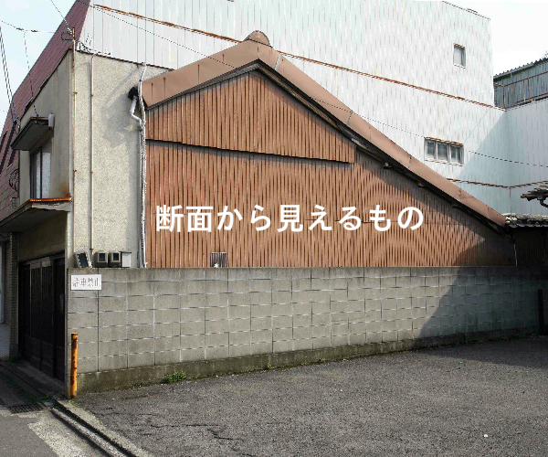 空き地が生まれたことで見ることができる、このような町家のカタチを「断面マチヤ」と名付けます。空き地と断面マチヤは一対のものであり、まちの成り立ちを楽しく読み解くことができる絶好の機会として存在しています。