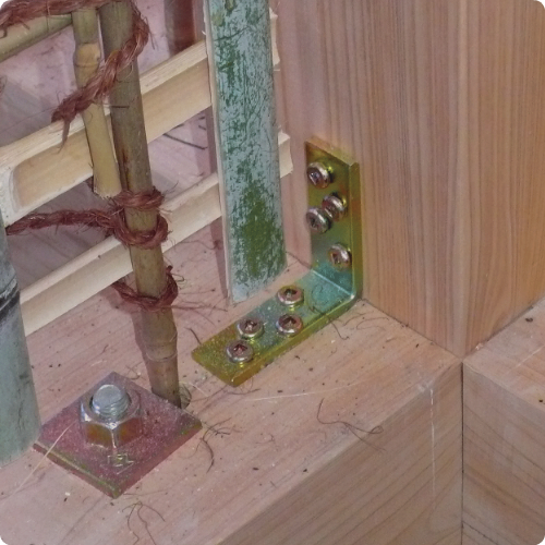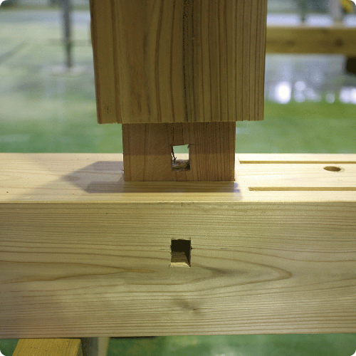 軸組は土壁を拘束して土の耐力を向上させます。軸組製作の要点は仕口(接合部)にあります。仕口の役割は次の二点です。