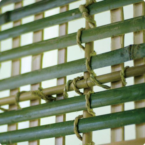 ヨコ間渡し竹は曲げ確実に穴に差す