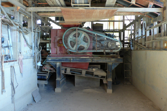 写真−2:振動機通過の粘土をロールクラッシャーで細かく潰す