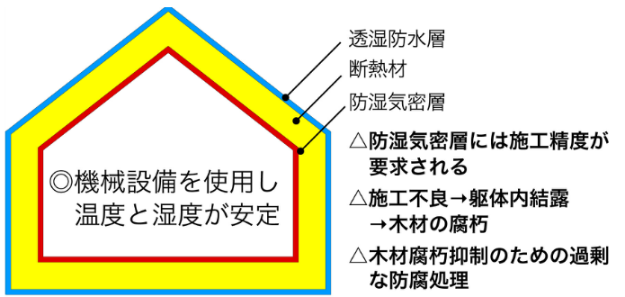 図−4:外皮断熱をする一般的な乾式工法の住宅