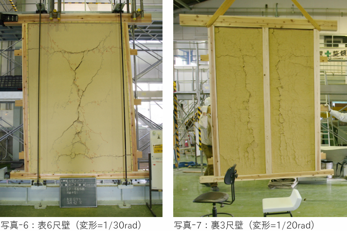 6尺壁は、壁面が荷重を受け止めて壁土がひび割れながら壊れる「せん断破壊」です。(写真 -5)