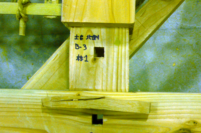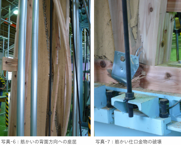 筋かいは、木材の座屈か仕口の破壊で耐力の終局を迎えます。(写真 -6、 7)