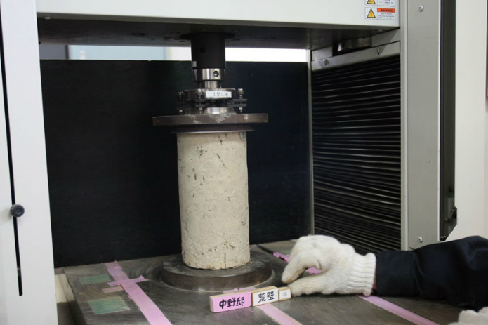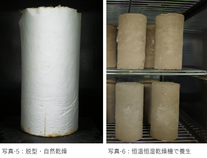 写真-2:提案する円筒型試験体による一軸圧縮強度試験